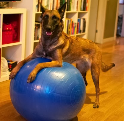 Trots att jag skulle vara ledig blev jag tvungen att jobba några timmar på förmiddagen i fredags, så sedan passade jag på att gå på stan och fixa lite grejer. Bland annat köpte jag en pilatesboll. Jag har sett en del filmer på you tube på hundar som balanserar på pilatesboll, så jag frågade hundfysioterapeuten om det och han tyckte absolut att det skulle vara bra träning för Chansa. Och det skulle ju inte skada om jag tränade lite också, så därför fick det bli en liten julklapp till både mig och Chansa. Fast om jag känner mig själv rätt så kommer jag säkert att träna henne mer än mig själv.